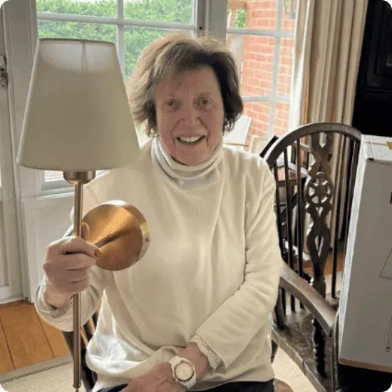 « Très satisfaite de la Lumière Élite. À mon âge, je voulais quelque chose de simple à installer et c’est le cas : aucun trou, l’adhésif tient très bien. Lumière douce qui rend mon espace chaleureux, pratique pour travailler et me détendre. »